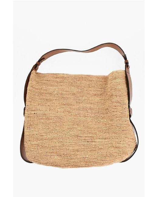 Women's Natural Raffia And Leather Shoulder Bag Jungle With Logo Detail