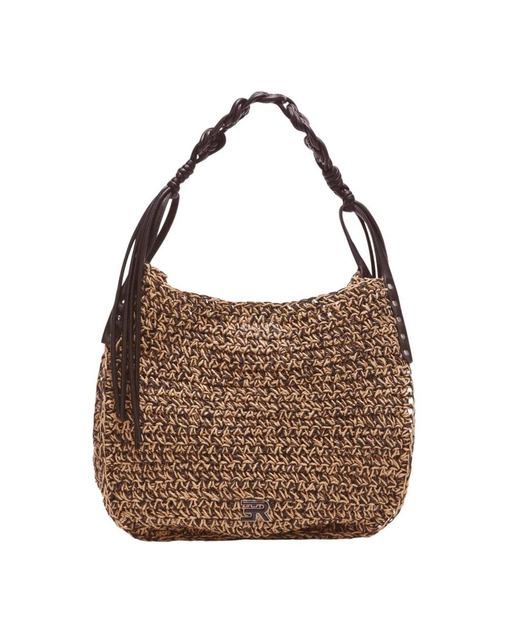 Ermanno Scervino Borsa Hobo Grande in Rafia Bicolore is a roomy hobo shoulder bag defined by its two-tone raffia weave and a tubular braided ecopelle handle. Ideal for everyday carry and resort outings, it balances texture and silhouette. Key attributes: Brown | Black | Rafia | Tubular braided faux-leather handle | Shoulder carry | Hobo silhouette | Bicolour raffia weave | Tubular braided handle detail | Dimensions & fit: 22cm x 8cm x 15cm | Composition & care: Rafia | Ecopelle Colour: brown
