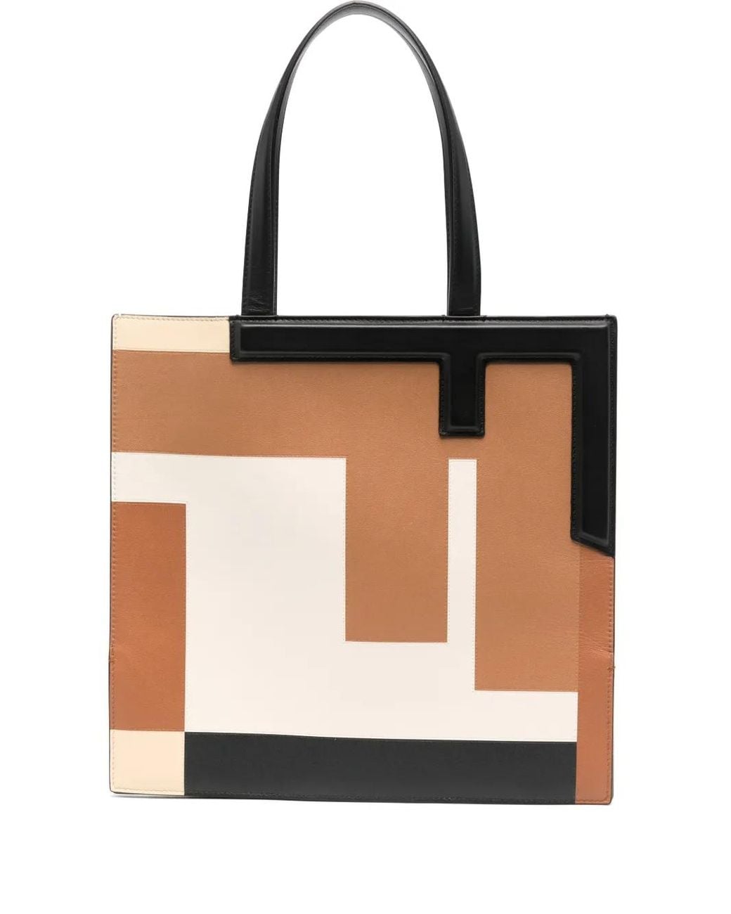 Camel brown/cream white/black calf leather grained texture colour-block panelled design appliqué logo two flat top handles main compartment full lining no fastening This piece comes complete with a protective dust bag. This piece can be styled in multiple ways. Size: One Size. Gender: Female. Material:Calf Leather.