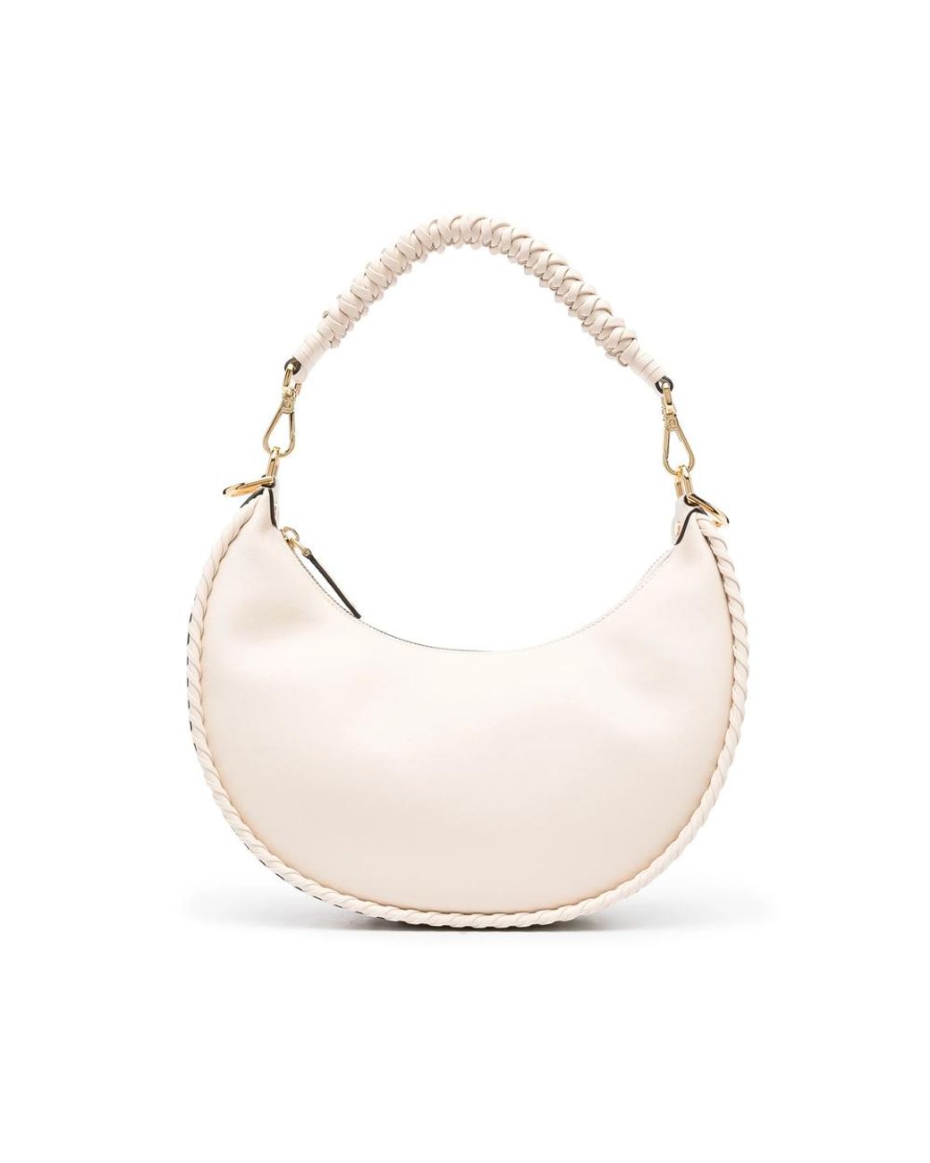 Ivory white calf leather braided edge single braided shoulder strap top zip fastening main compartment