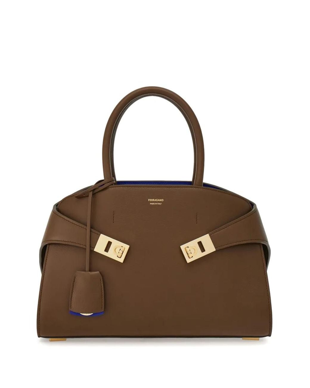 Taupe brown leather smooth grain tonal stitching gold-tone hardware logo stamp to the front Gancini flip-lock fastening two top handles adjustable detachable shoulder strap main compartment Size: One Size. Gender: Female. Material:CALFSKIN/Lamb Skin/CALFSKIN.