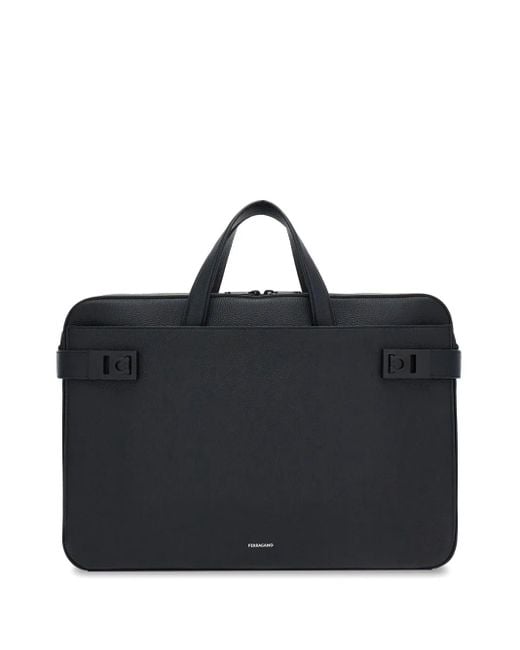 Men's Black Gancini-Buckle Leather Laptop Bag