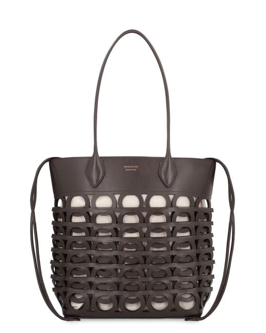 Gancini Leather Tote Bag - Brown