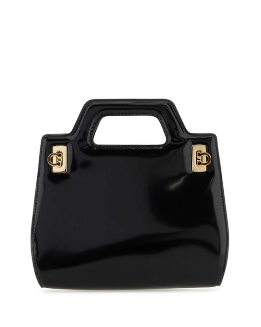 Handbag realized in polished-finish calf leather characterized by metal Gancini details snap-fit closure at the front. Two built-in handles- Adjustable detachable tonal leather shoulder strap-. Lined interior with two credit card slots Composition: Exterior: 100% Calf. Lining: 100%. Leather. Finishing: Golden metal.