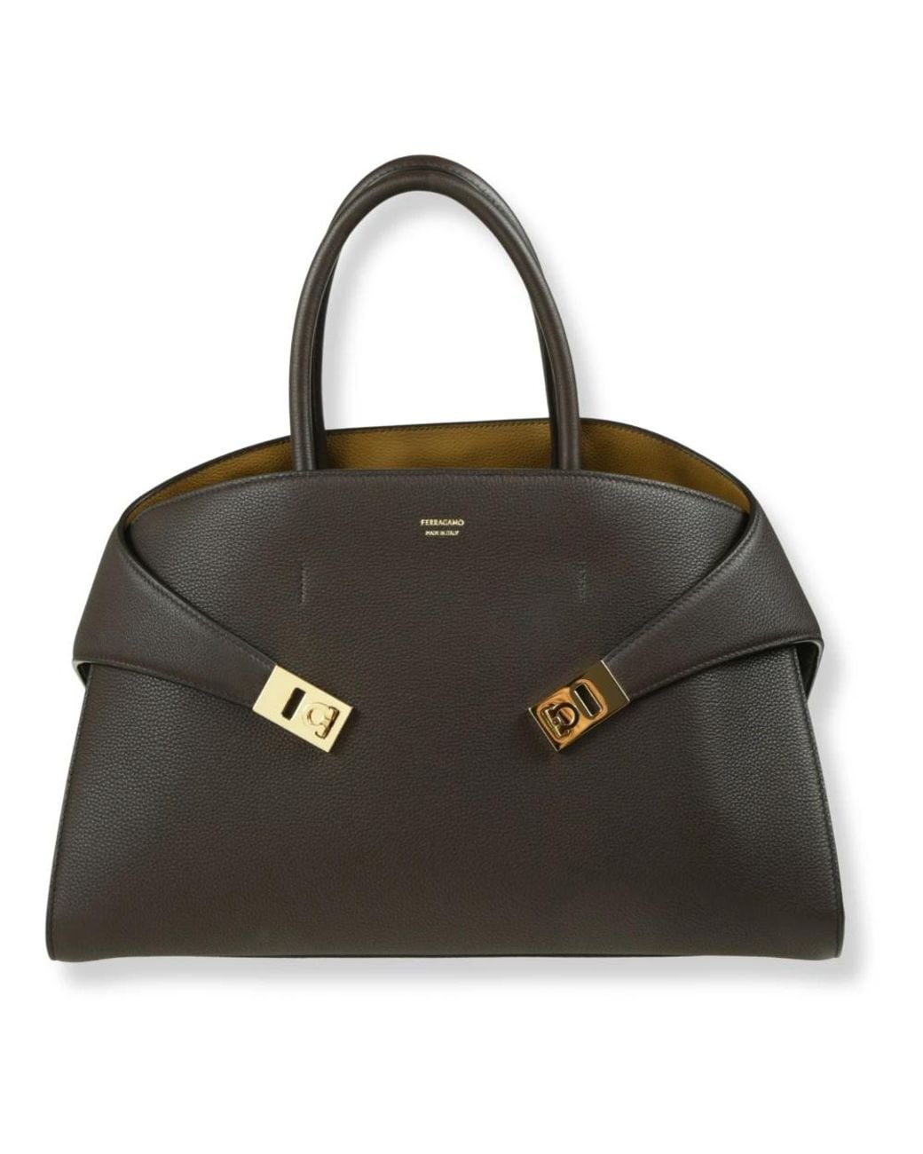 Ferragamo Hug Handbag (L) showcases the brand’s signature Hug side bands and Gancini-logo buckles for a refined, everyday silhouette. It combines top handles with a removable shoulder strap for versatile carry options. Key attributes: Black | Testa Di M | Internal zip pocket | Double top handles | Removable shoulder strap | Hug side bands | Gancini-logo buckles on front Colour: black