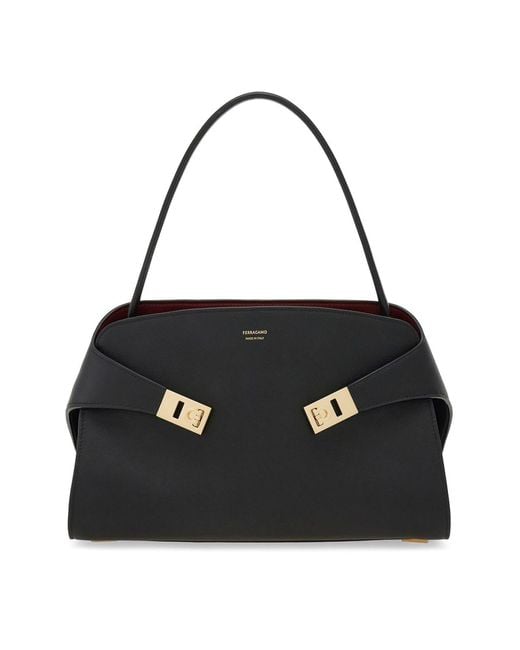 Black smooth grain gancini flip, lock single top detachable shoulder strap, tone hardware logo stamp to the feet partitioned compartment zip, pocket patch pocket Colour: black