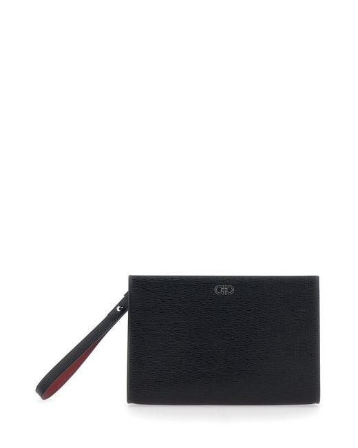 Men's Black 'Revival' Clutch With Wrist Strap And Gancini On The F