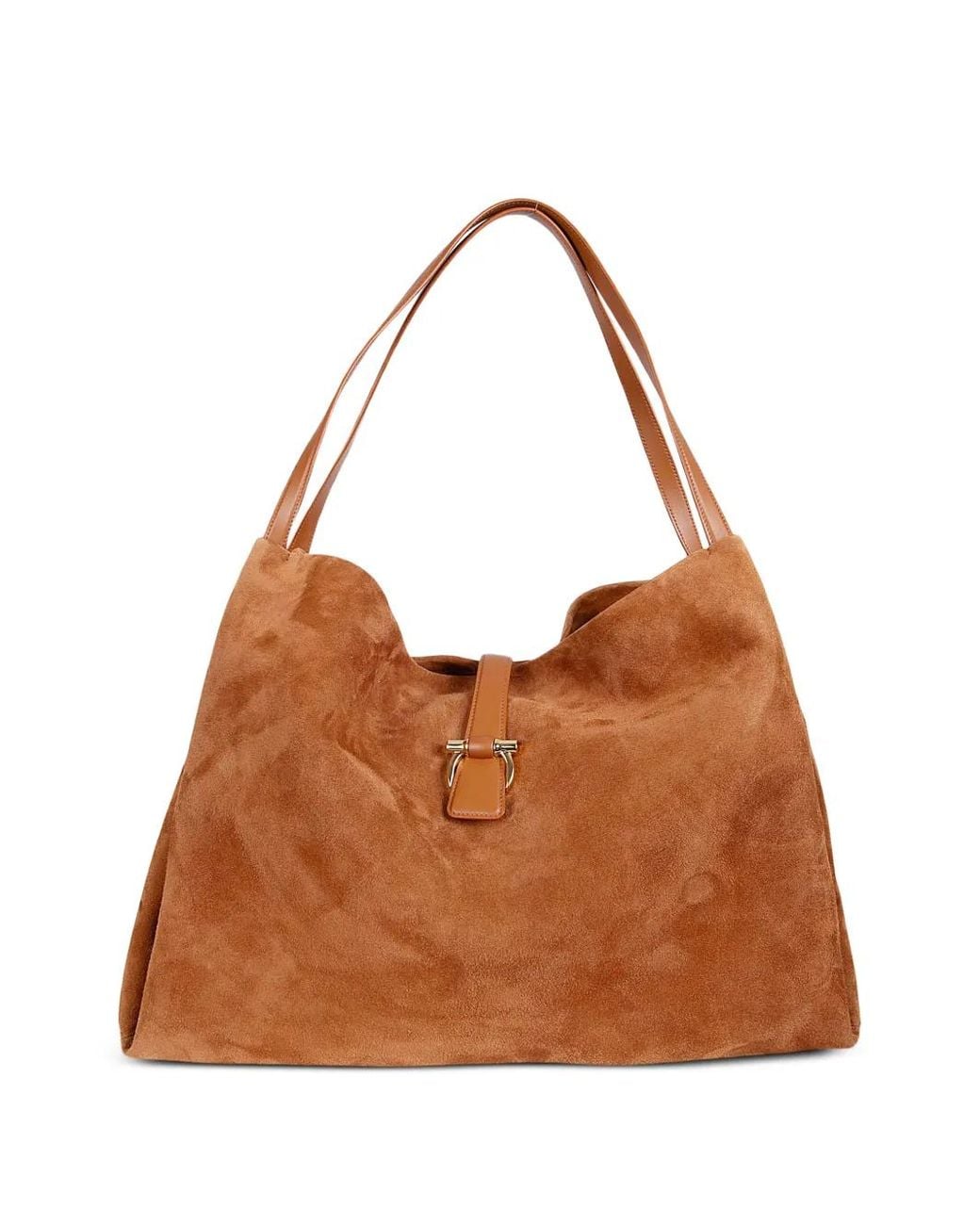 Dark Leather Hug S Suede Top Handle Bag - Black