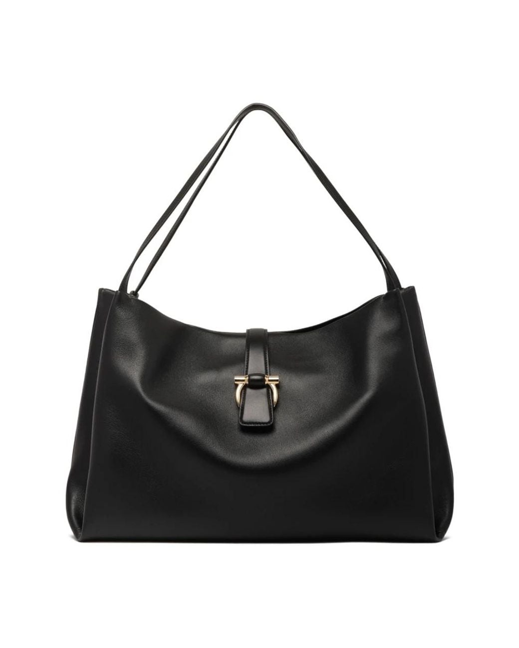 Ferragamo Medium Gancini Tote Bag pairs structured leather construction with the brand's signature Gancini buckle. Designed for everyday carry, it offers easy access and organised storage for daily essentials. Key attributes: Black | Nero Nero | Leather | Magnetic fastening | Two flat shoulder straps | Internal zip-fastening pocket | Gancini buckle | Debossed internal logo | Gold-tone hardware | Medium tote silhouette | Composition & care: Leather Colour: black