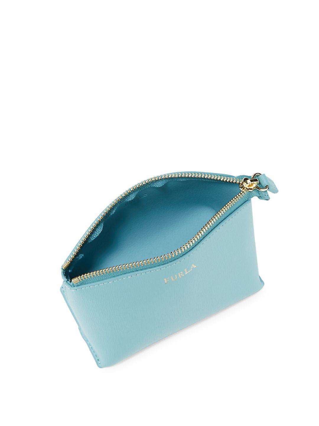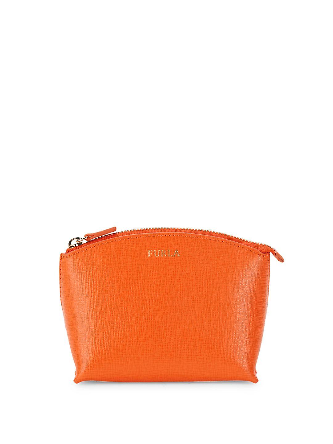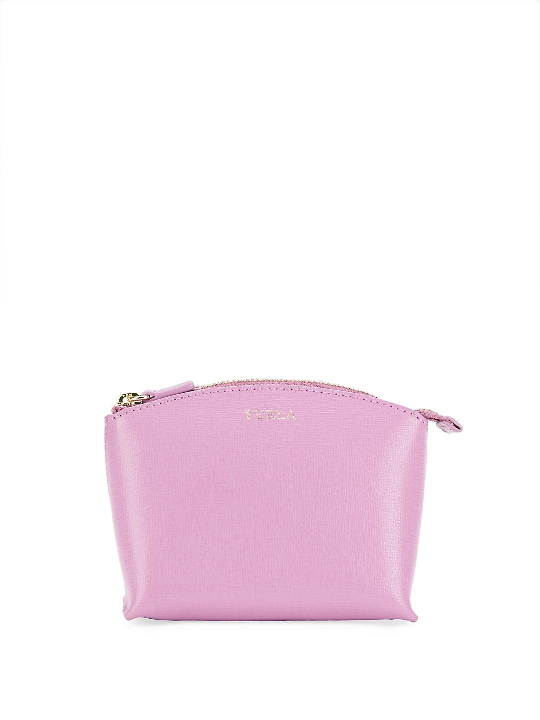 On-trend leather cosmetic bag ideal for everyday use. Top zip closure. Goldtone hardware. Leather lining. Includes dust bag. 4.5"W x 3.5"H x 2.5"D. Leather. Leather. Furla.
