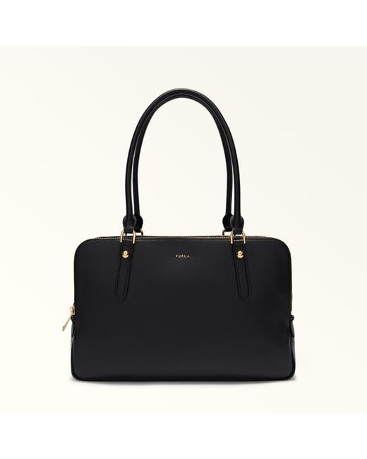 Women's Black Giulia Boston Bag L Nero Textured Leather + Suede