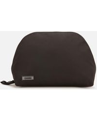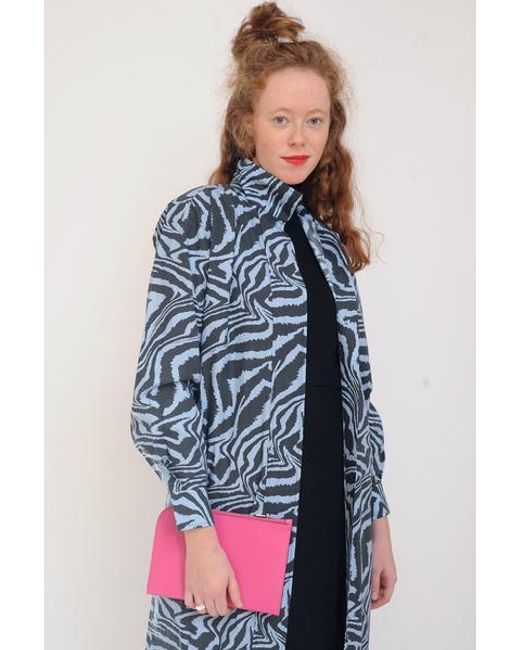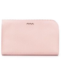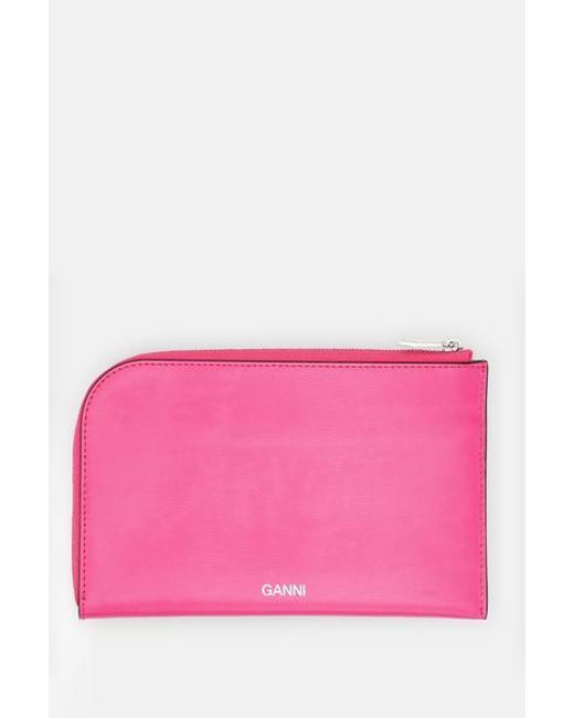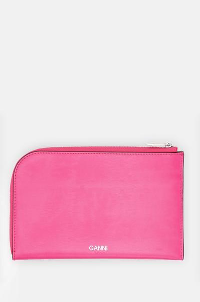 This ultra chic large pouch in bright pink supple textured leather is closed with a secure zip closure along two sides and finished with a bespoke metal ganni embossed zip pull. It has an open outside side pocket and embossed ganni lettering on the front. The inside has 5 card holder pockets and moiré pattern lining. Use as a clutch or a document wallet inside your handbag: this is the way to be super stylish and organised. 12 x 19cm 100% cow leather, 100% poly synthetic leather. Colour: multicolour