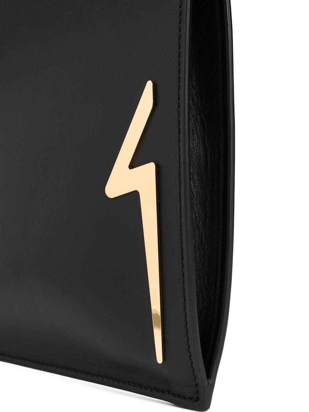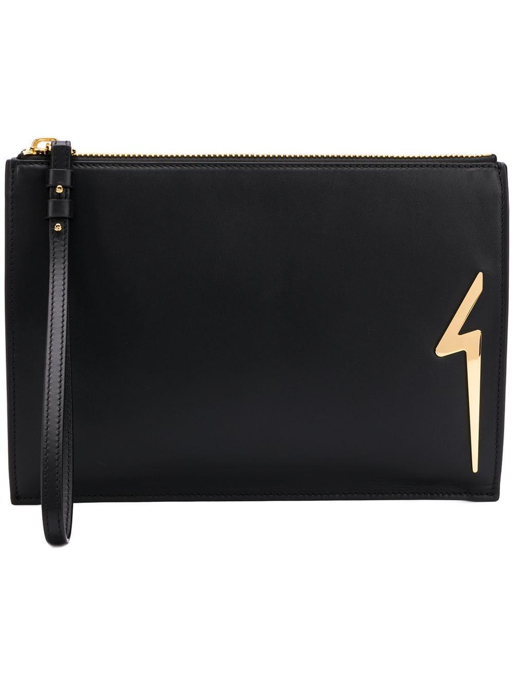 Go to FarfetchKnown for his perfectly crafted urban cool trainers, Giuseppi Zanotti creates street-wear pieces that are the height of sports luxury. This Italian crafted, SS19 black calf leather New Thunder clutch from Giuseppe Zanotti Design features a gold tone Thunder logo plaque, a top zip closure and an internal compartment. Material:Calf Leather. This item may not be on sale in France, UK, Italy, Belgium and Switzerland. Colour: black