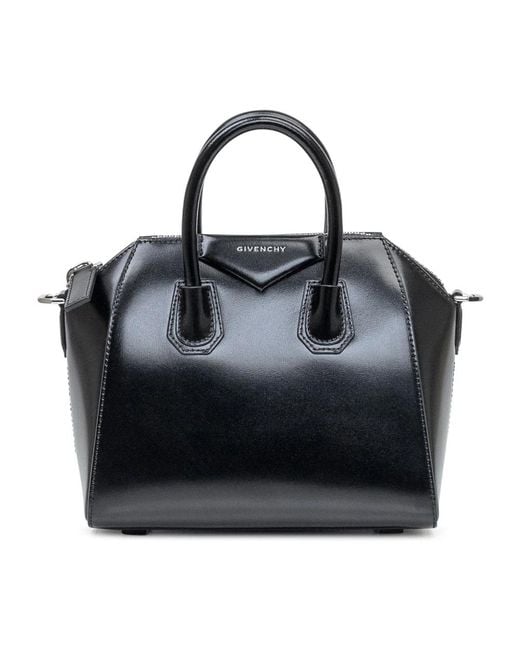 Givenchy's Antigona Handbag pairs a structured, boxy silhouette with versatile carrying options. It features double top handles, a removable shoulder strap and a prominent front logo for a refined everyday bag. Key attributes: Black | Calfskin leather | Double top handles | Removable and adjustable shoulder strap | One main compartment with internal flat and zip pockets | Front logo patch | Pentagonal embossed logo patch | Structured box shape | Composition & care: 100% calfskin leather | Lining: 90% cotton, 10% polyester Colour: black