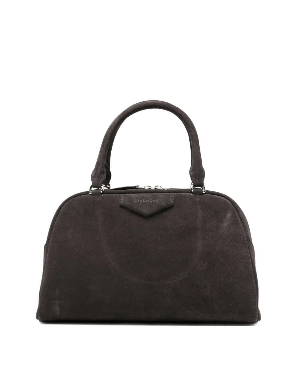 Grey top handles zip fastening internal slip pocket This piece comes complete with a protective dust bag. Size: One Size. Gender: Female. Material:Calf Suede/Cotton/Acrylic. Colour: black