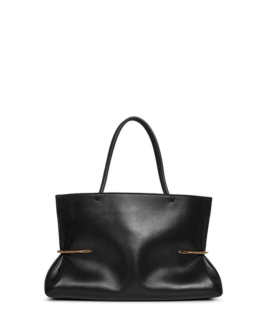 Women's Black Pinch Squeezed Horizontal Tote Bag