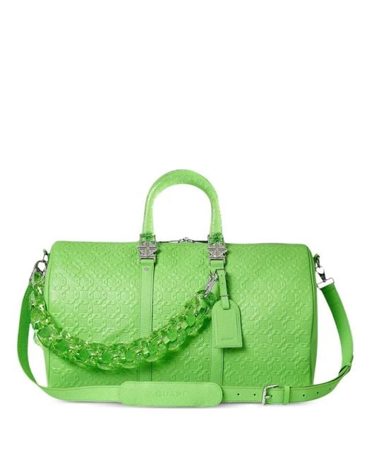 Men's Green Embossed Chain Leather Duffle Bag