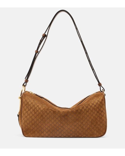 Women's Brown Half Horsebit Medium Suede Shoulder Bag
