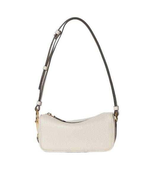 * Ivory soft grainy leather * Light gold-toned hardware * Tonal cotton linen lining * Half Horsebit * Leather shoulder strap with 9' drop * Zip closure * 7.4'W x 3.7'H x 3.5'D * Weight: 0.6lb, approximately * Fits iPhone Pro Max/Plus, Airpods, small wallet, and lipstick Colour: white