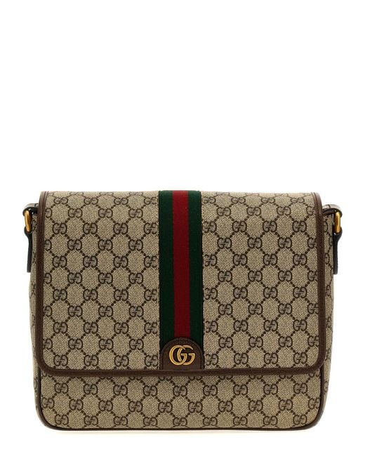 'Ophidia' medium crossbody bag in GG Supreme fabric with leather details, magnetic closure, metal logo detail and Web Ribbon, adjustable shoulder strap.