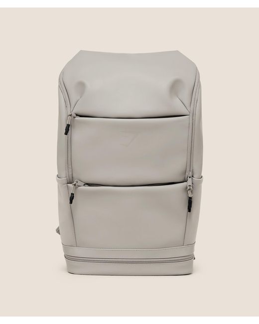 THIS BAG MEANS BUSINESSThe Sleek Backpack’s aesthetic is unmissable, but its functionality goes even further with enough pockets to carry work essentials, gym kit and meals for the day all at the same time. 3 zipped pockets Padded laptop sleeve and internal pocket organiser Meal prep/wet kit pocket to bottom and two external drop pockets Padded back panel with branded webbing SIZE & FIT Length: 35cm. Height: 55cm. Width: 20cm. Volume: 23L (approx) Laptop sleeve: 25cm length and 36cm height MATERIALS & CARE Outer face: 100% Thermoplastic Polyurethane Back: 100% Polyester Lining: 100% Polyester SKU: Colour: natural