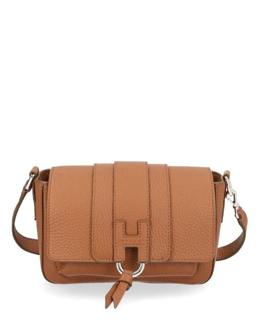 Small H-Logo Flap-Closure Shoulder Bag - Natural
