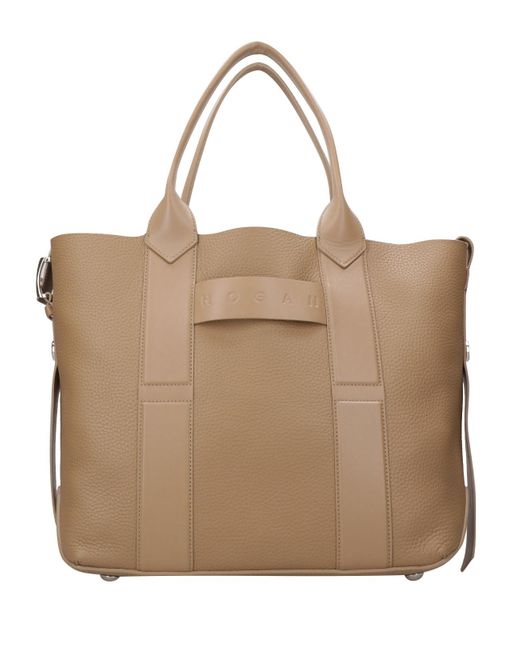 - Grained leather - Smooth leather inserts - Front handle with embossed Hogan logo - Fixed handles - Adjustable top compartment with personalized strap and buckle - Via Monte Napoleone address logo imprinted on left list - Hogan logo imprinted on the right list - Interior matching leather pouch and removable zipper - Metal feet - Fabric pouch included - Dimensions: H 40cm; W 32cm; D 16cm Colour: brown