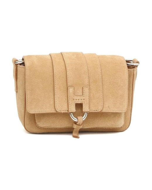 Hogan Small Flap Bag in suede offers a compact crossbody silhouette with a crocodile‑print finish and metal loop flap detail, ideal for organized day-to-evening carry. Key attributes: Beige | Suede | Adjustable shoulder strap | Can be worn crossbody or over the shoulder | Flap closure | Front pocket | Side pockets | Crocodile-print suede | Metal loop flap detail | Front flap design | Dimensions & fit: Length 20 cm | Height 14 cm | Depth 7.5 cm | One size | Composition & care: Calf suede 100% | Leather inserts Colour: natural