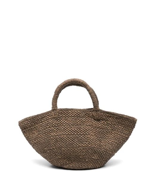 Olive brown magnetic fastening two rolled top handles internal patch pocket internal logo patch Size: One Size. Gender: Female. Material:Straw/Cotton. Colour: brown