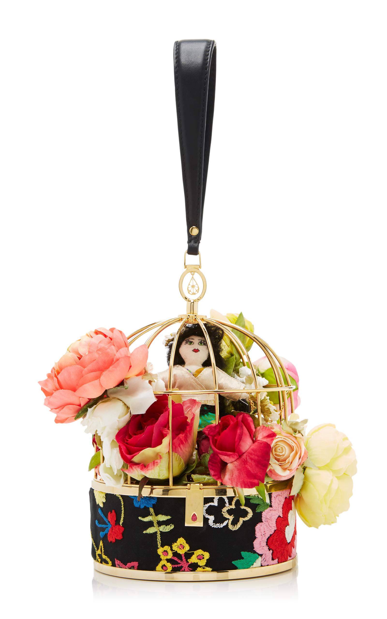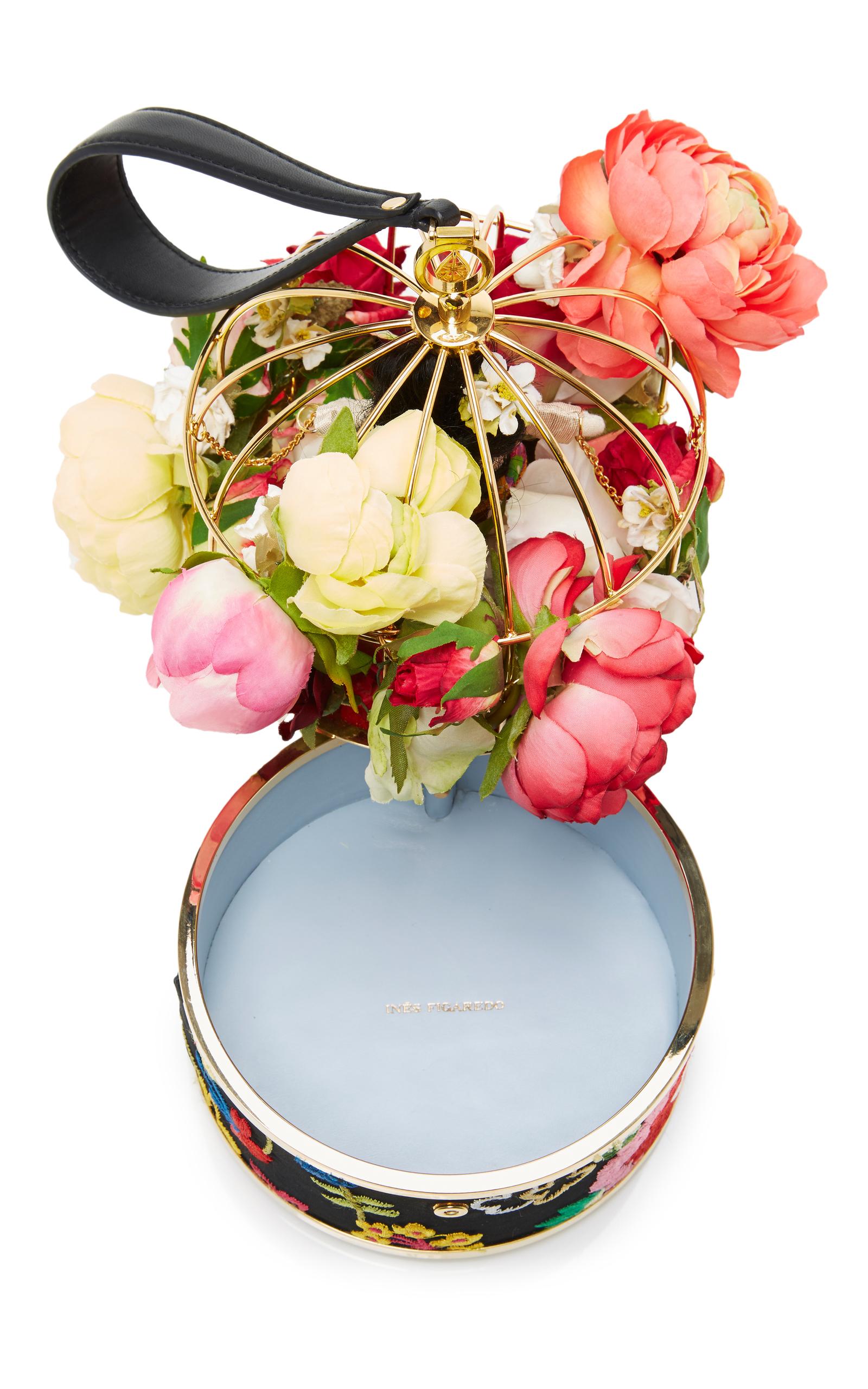 Go to Moda OperandiThis Ines Figaredo Container Manila Purse is rendered in Spanish Manila shawl and features 24k gold plated brass hardware and an eye-catching and surreal design. Handmade textile woman with synthetic hair. Flower applications. Nappa lambskin leather lining. Material: Manila shawl, nappa lambskin. Top latch. Made in Spain. Dimensions: 23cm (9.06") x 15cm (5.91") x 15cm (5.91").