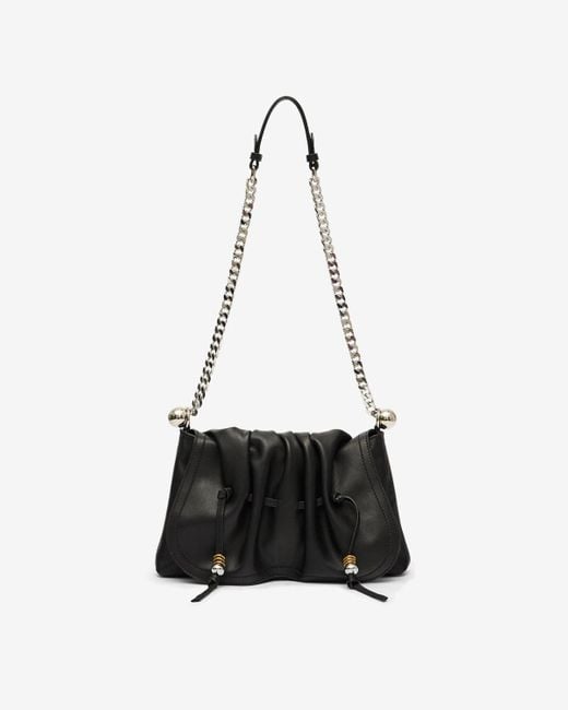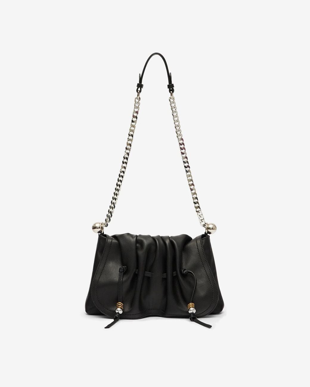 Discover the new Party Wear capsule from Isabel Marant: sequin tops, sparkling dresses and skirts, rhinestone sweatshirts, studded bags, silver accessories, and dazzling jewellery. Everything you need to create a glamorous and unforgettable party look, perfect for festive events.Leather shoulder bag
