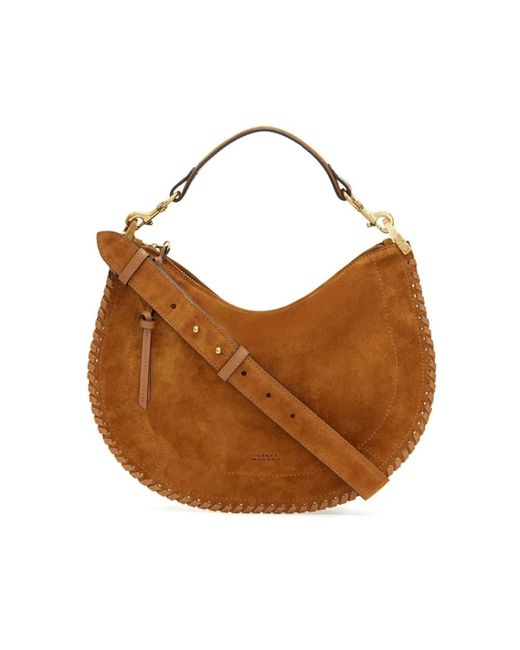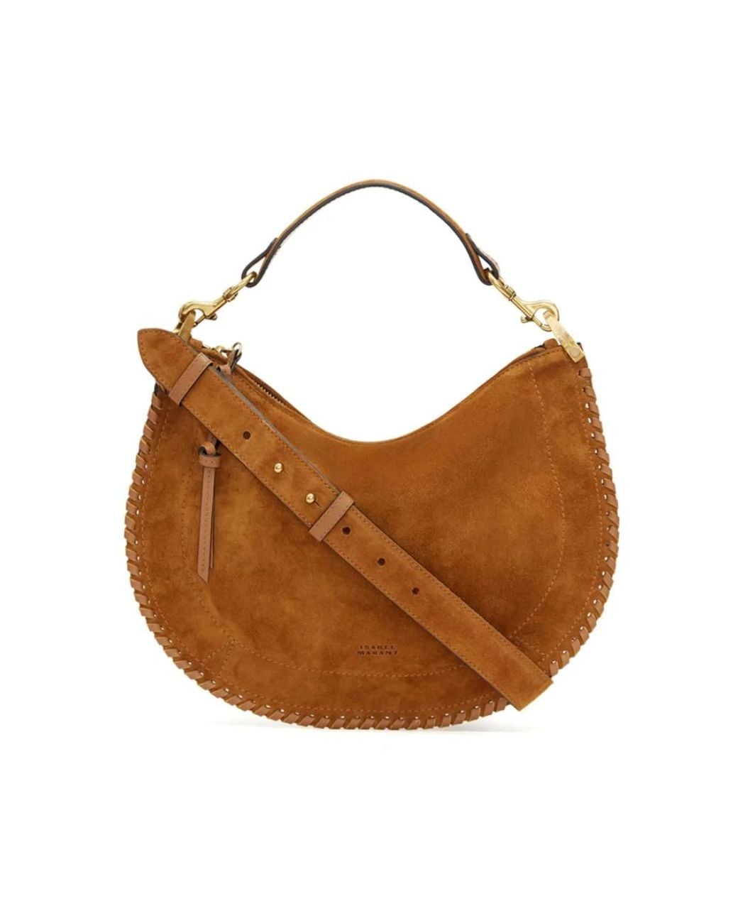 Isabel Marant shoulder bag in calf suede, designed with a braided edge and a top-zip closure for secure everyday use. Key attributes: Brown | Calf suede | Top zip fastening | Single top handle | Detachable shoulder strap | Internal patch pocket | Braided edge | Logo stamp to the front | Main compartment | Internal logo stamp | Composition & care: Calf suede Colour: brown