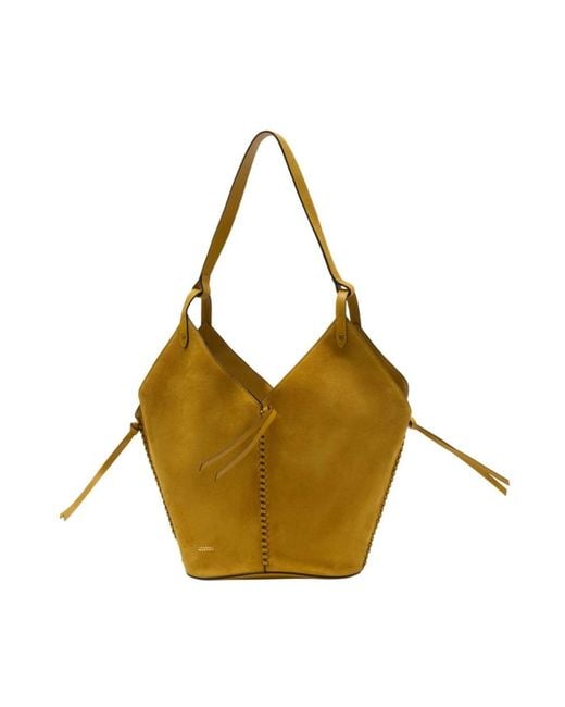 Isabel Marant Tampa Bag is a roomy shopper tote with braided detailing and a single handle, designed for easy hand or shoulder carry. Key attributes: Yellow | Saffron | Velvet calfskin | One handle | Hand or shoulder carry | Open top | No inside pocket | Braided detailing | Smooth handle | Dimensions & fit: 40 x 48 x 21 cm | Composition & care: Velvet calfskin | Cotton Colour: brown