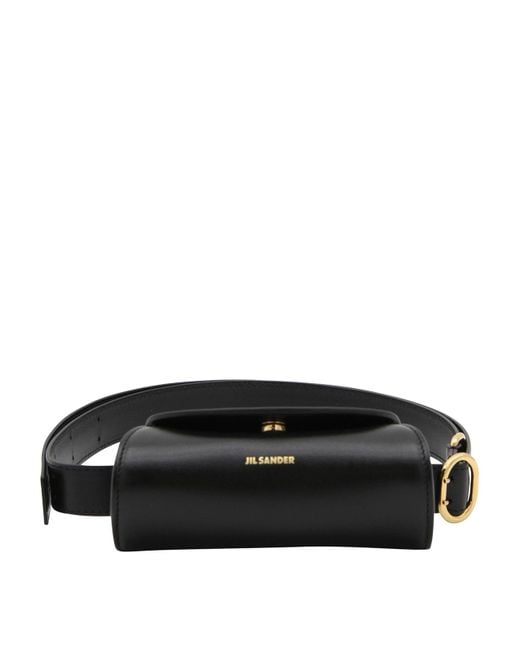 Black cannolo small tote bag from jil sander featuring tone finishes embossed logo at magnetic adjustable shoulder strap and main compartment Colour: black
