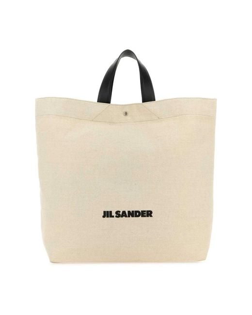 Introducing the Jil Sander Sand Canvas Shopping Bag, a spacious and stylish tote perfect for carrying all your essentials. Crafted from durable canvas, this bag combines practicality with chic design. Key attributes: Beige | Tan | Canvas | Spacious interior | Logo print | Dimensions & fit: Width: 40 cm | Height: 43 cm | Depth: 11 cm | Handle height: 13 cm | Colour: natural