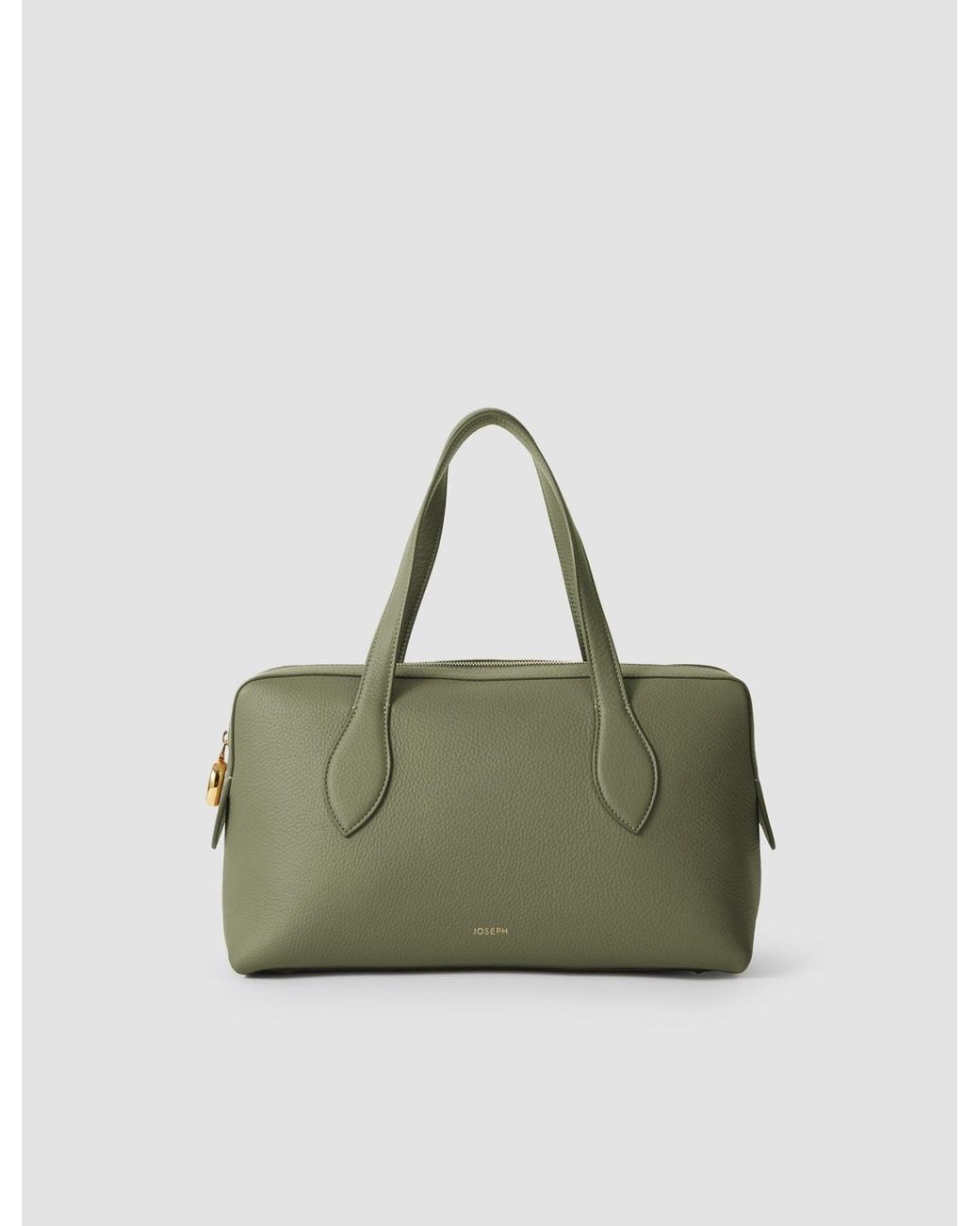 The structured Loaf Bag is crafted from fine-grain Italian leather. Balancing style with everyday utility, it’s detailed with a gold-tone bean zip, an internal pocket, and a studded base for added protection. Colour: green