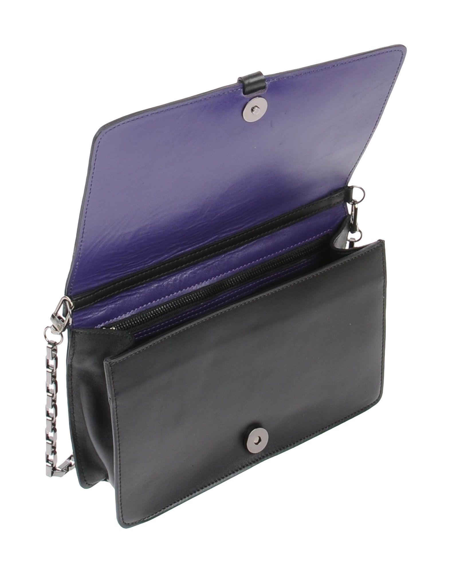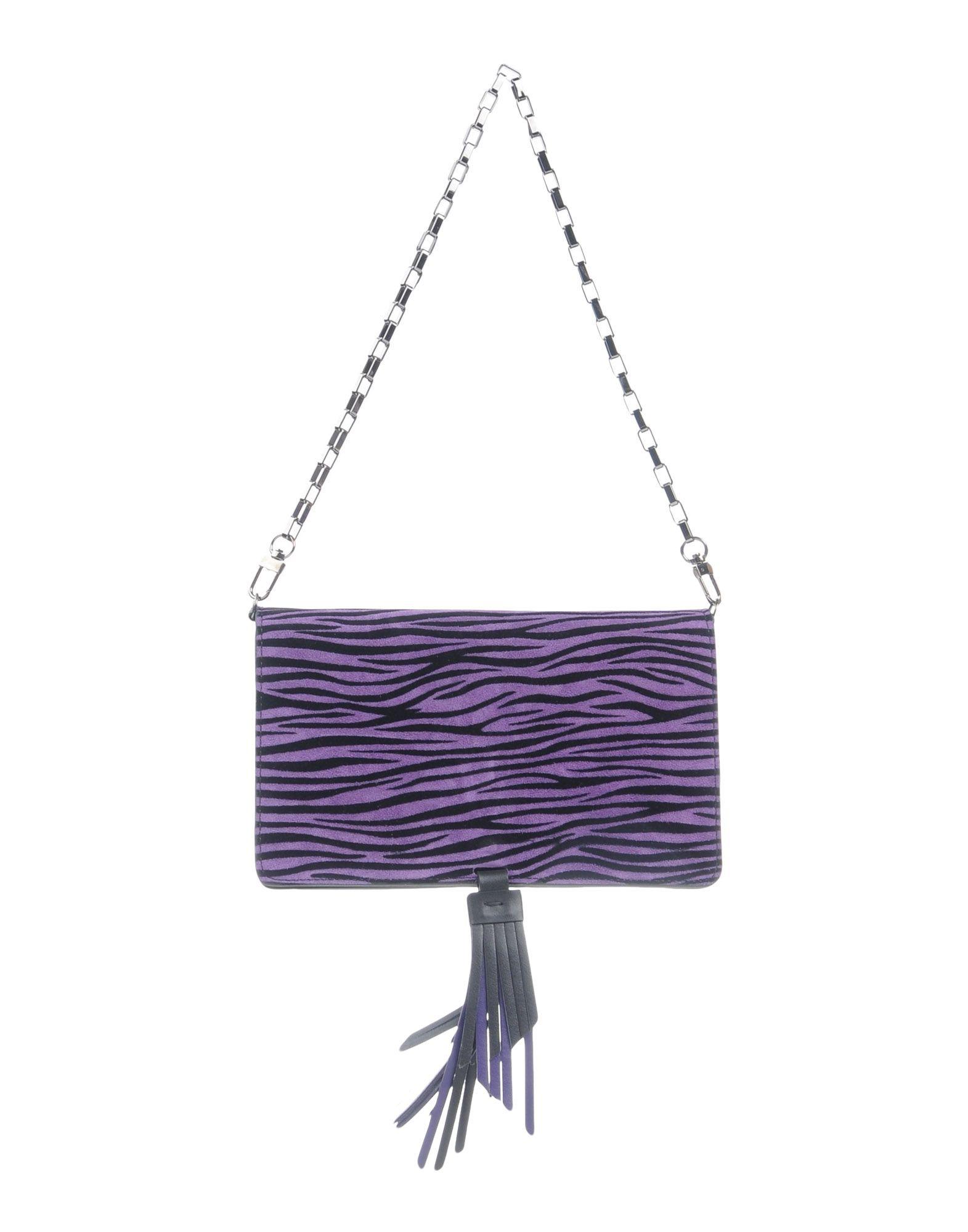 Sueded effect, two-tone pattern, logo, fringe, magnetic closure, internal zip pocket, removable shoulder strap, metallic straps, lined interior, mini, contains non-textile parts of animal origin, clutch bags. 100% Calfskin, Iron. Colour: purple