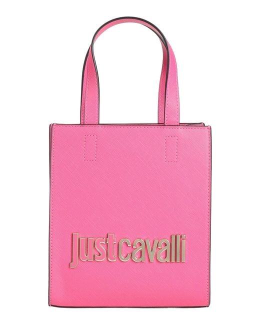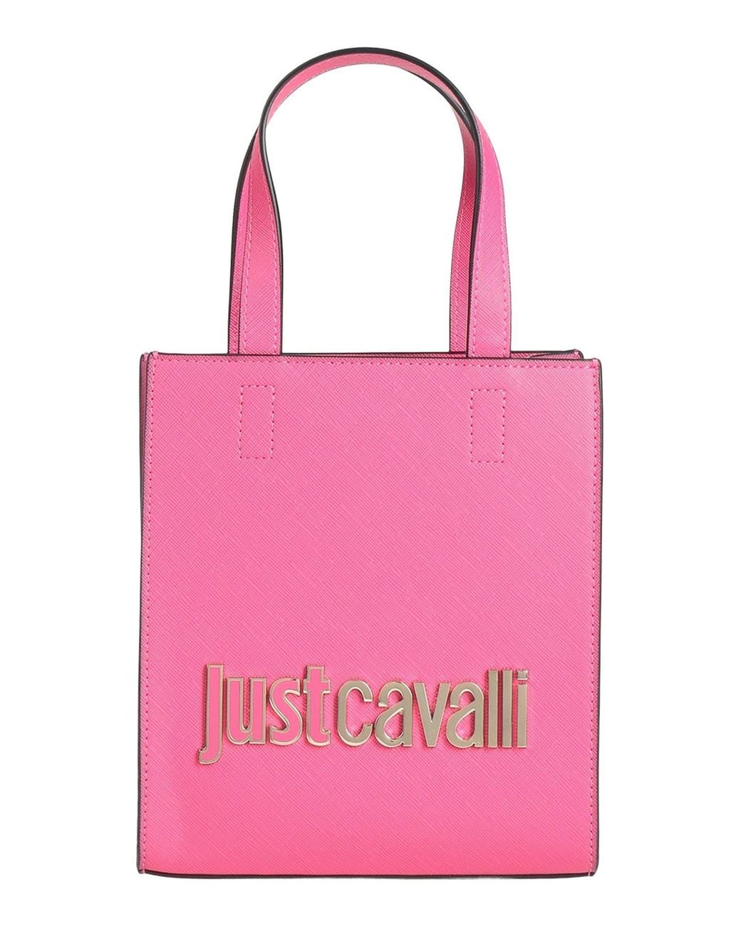 JUST CAVALLI. shopper bag, synthetic material, plain colour with appliqués, brand logo, magnetic fastening, fully lined, internal pocket, top handles, detachable shoulder strap, small size. 100% Polyester, Polyurethane resin. Colour: pink