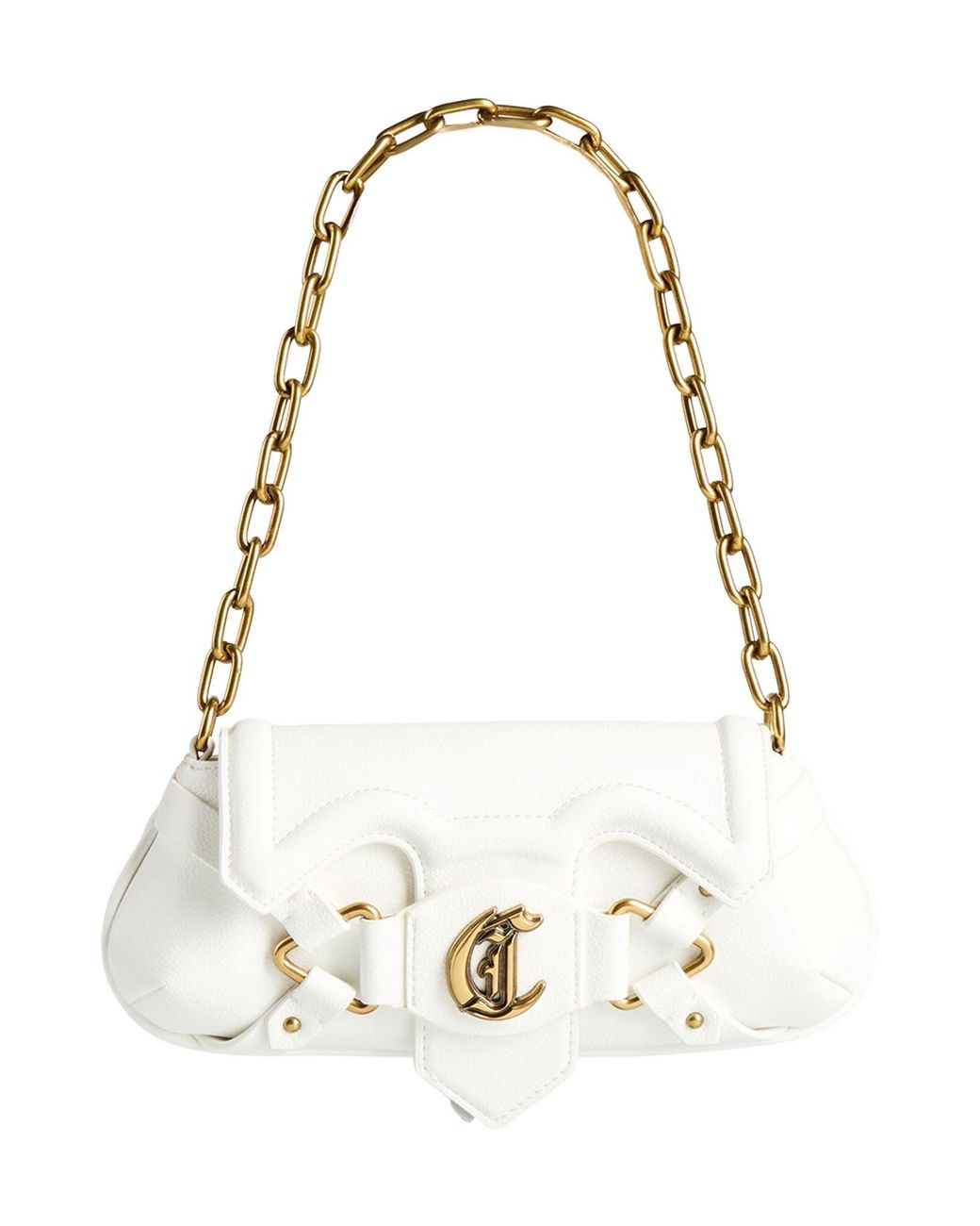 JUST CAVALLI. baguette bag, synthetic material, plain colour with appliqués, logo-embellished, buckle, fully lined, card slots, chain top handle, detachable shoulder strap, medium size. 100% Polyester, Polyurethane resin.