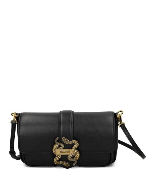 Women's Black Snake-Buckle Satchel