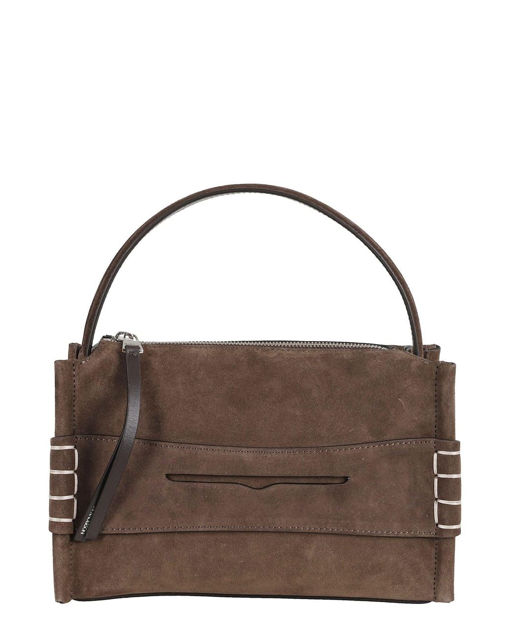 Category: Handbags Item: Small Moccasin Bag Brand: JW Anderson Color: Brown Details: Moccasin style, removable shoulder strap, suede Pockets: One interior card holder SIZE & FIT Width: 22 cm Height: 15 cm Depth: 8 cm Colour: brown