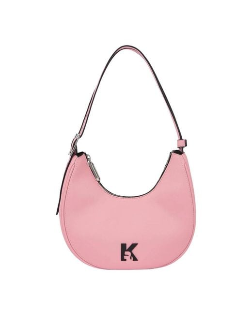 Karl Lagerfeld KLJ K Logo Halfmoon Bag pairs a contemporary half‑moon silhouette with a metallic K logo for a modern everyday shoulder bag. Its lightweight, structured design works for daytime errands and evening outings. Key attributes: Pink | Polyester | Polyurethane | Lightweight | Durable | Adjustable shoulder strap | Zip closure | Interior zip pocket | Can be carried over the shoulder or by hand | Half‑moon silhouette | Metallic K logo on front | Modern minimalist profile | Dimensions & fit: Medium size | Composition & care: 50% polyester | 50% polyurethane | Wipe clean with a damp cloth; avoid prolonged exposure to heat and direct sunlight. Colour: pink