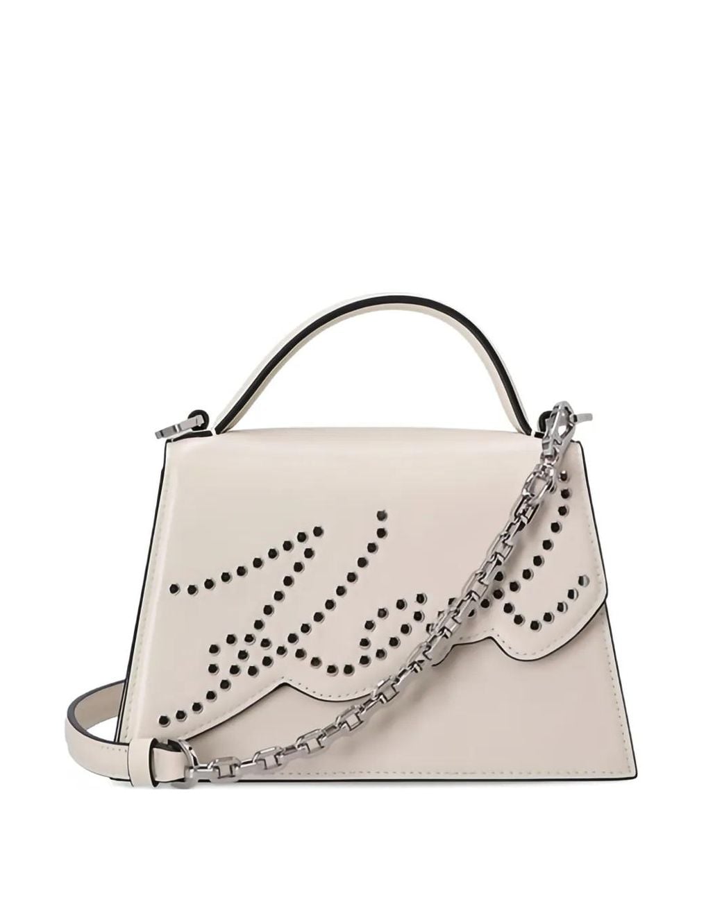 Beige studded detail chain strap top handle Size: One Size. Gender: Female. Material:Calf Leather. Colour: metallic