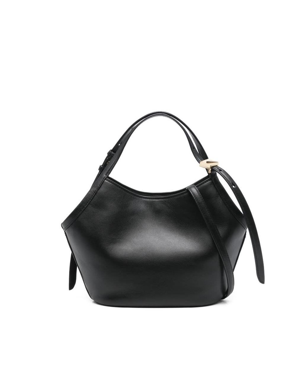 The Kate Spade Small Tulip Tote - Leather is a compact leather tote designed for everyday carry. Its adjustable top handles and detachable crossbody strap deliver versatile, hands-free wear. Key attributes: Black | Leather | Adjustable top handles | Detachable shoulder/crossbody strap | Interior slip pocket | Interior zip pocket | Interior divider pocket | Tote silhouette | Top handles | Structured shape | Gold-tone hardware | Dimensions & fit: 12.9" x 4.33" x 8.66" | Top handle drop: 5" | One size | Composition & care: Leather | Leather trim | Spot clean only. Colour: black