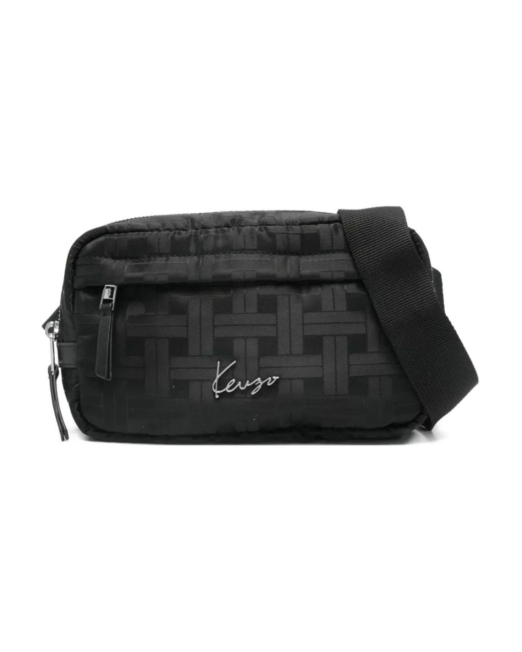 Kenzo cross body bag for men with black details, zip closure, and adjustable strap. Colour: black