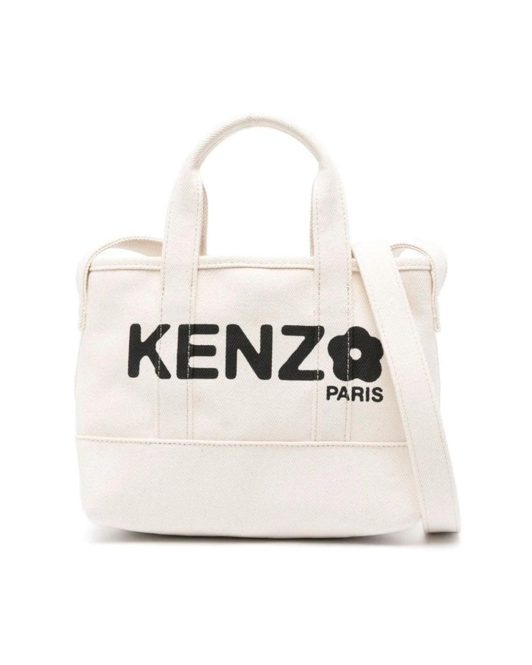 Elevate your style with this Kenzo handbag in ecru cotton/canvas featuring two top handles, a single shoulder strap, and a signature Boke Flower motif. The main compartment includes an internal card slot and logo patch, with full lining and silver-tone hardware. Complete with a protective dust bag. Dimensions: Depth: 9.0cm, Handle: 11.0cm, Height: 19.0cm, Strap: 123.0cm, Width: 26.0cm. Colour: white