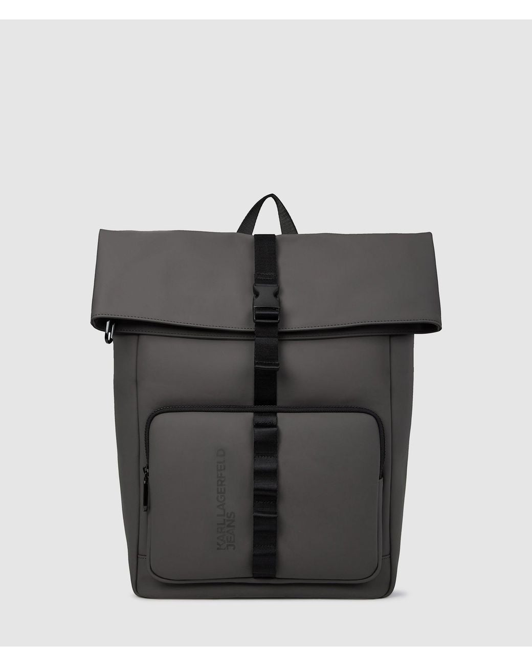 A Karl Lagerfeld Jeans Roll Top Strap Backpack In A Sleek Magnet Hue Offers A Bold Yet Functional Urban Accessory Designed For Everyday Use. Its Coated Polyester And Polyurethane Blend Creates A Durable, Water-resistant Exterior That Withstands City Life While Maintaining A Clean, Structured Silhouette. The Roll Top Closure Secured With A Buckle Adds A Distinctive Edge, Complemented By An Adjustable Contrast Strap And Tonal Branding For A Cohesive, Streetwear-inspired Look. Inside, The Backpack Features A Zipped Pocket To Keep Essentials Organized And Secure, While The Zipped Front Pocket Enhances Accessibility And Practicality. Twin Shoulder Straps With Tonal Karl Lagerfeld Jeans Logos And A Top Grab Handle Ensure Comfortable Carrying Options. This Backpack Balances Individual Style With Versatile Functionality, Making It Ideal For City Dwellers Seeking A Contemporary, Statement-making Carryall. Details Roll Top Closure With Buckle For Secure Storage Zipped Front Pocket For Quick Access Adjustable Contrast Strap With Branded Loops Twin Shoulder Straps With Tonal Branding Top Grab Handle For Easy Carrying Structured Silhouette With Water-resistant Finish Material: 50% Polyester, 50% Polyurethane Colour: Magnet Features: Roll Top Closure, Adjustable Strap, Zipped Pockets, Tonal Branding, Water-resistant Finish Colour: Grey Material: 50% Polyester, 50% Polyurethane. Roll Top Closure With Buckle And Inner Zip To Keep Essentials Safe, Top Grab Handle And Twin Shoulder Straps With Tonal Branding, Zipped Front Pocket For Enhanced Functionality, Adjustable Contrast Strap With Loops And Tonal Karl Lagerfeld Jeans Logo At The Front