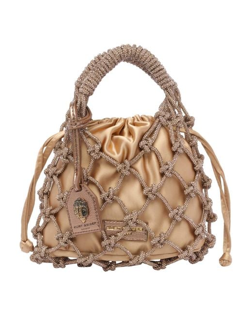 Kurt Geiger bronze Small Macrame Crystal handbag, coulisse closure, 2 handles, frontal charm logoComposition: 50% Glass, 50% Resin Gluer, 100% Polyurethane