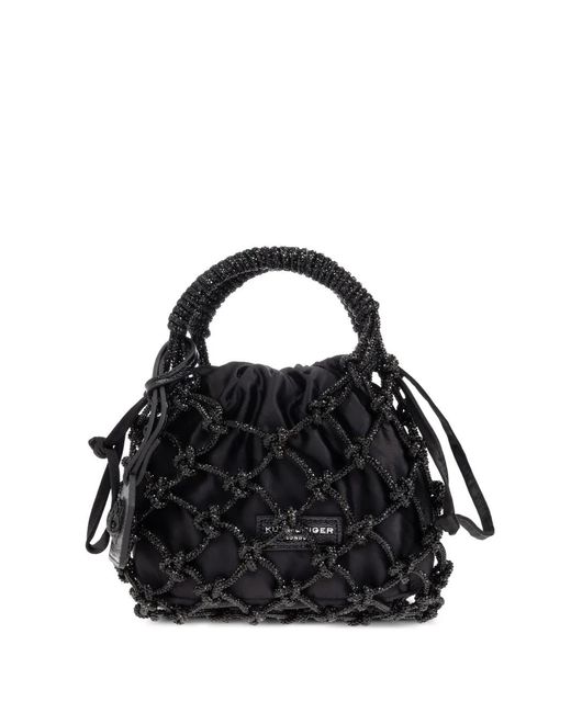 Women's Black Small Macramé Crystal-Embellished Tote Bag