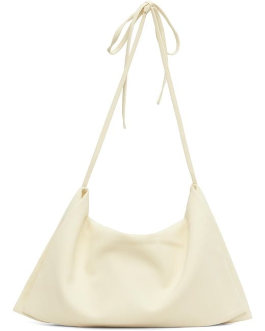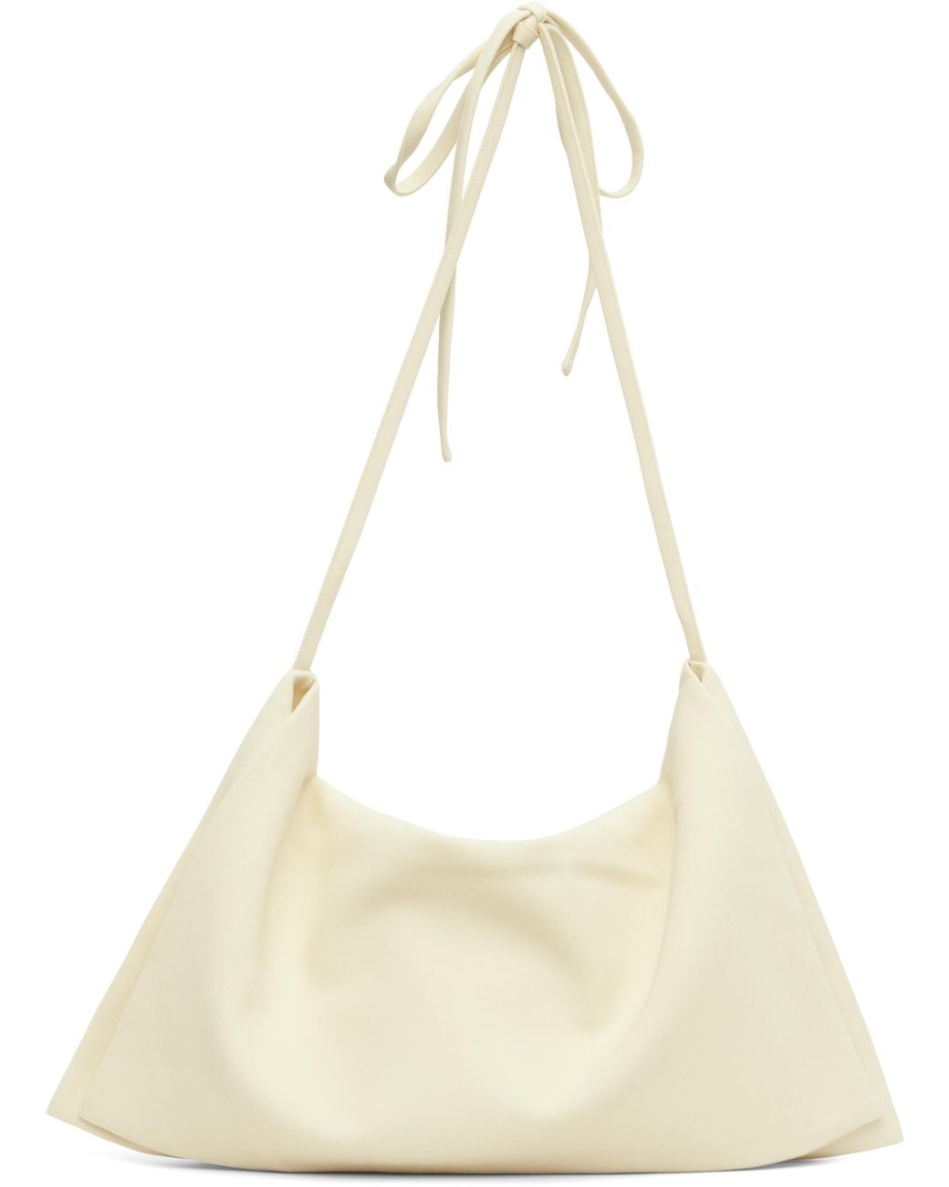 Virgin wool twill shoulder bag. · Foldover construction · Adjustable self-tie crossbody strap · Zip closure · Silk satin lining · Mulesing-free wool · H22.5 x W18.5 Supplier color: Off white Colour: natural